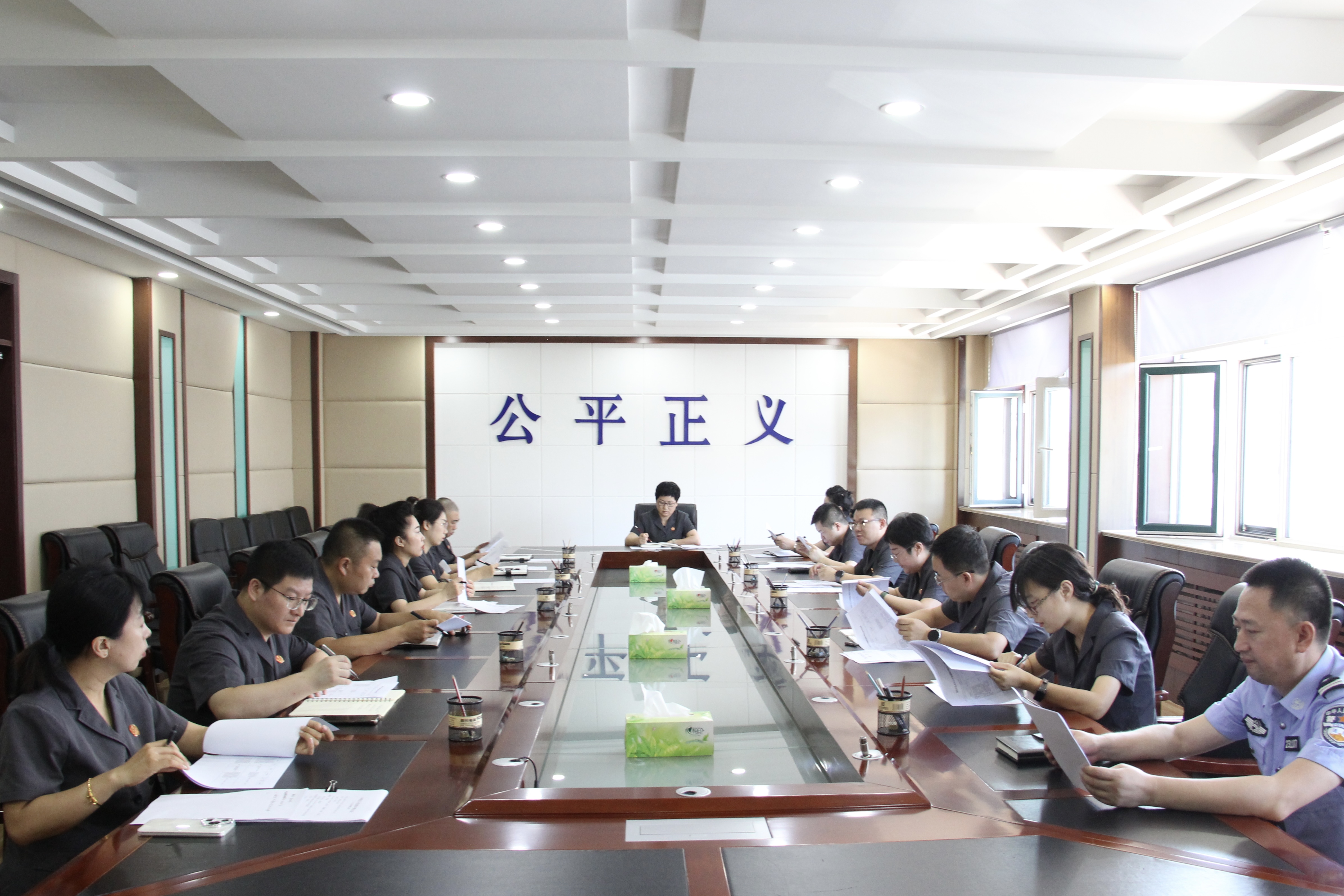 8月14日,伊美区人民法院召开党组 (扩大)会议,专题学习贯彻党的二十届三中全会精神、省委十三届六次全会精神以及市委十三届六次全会精神,研究具体落实意见。伊美区法院党组书记、院长徐苇兰主持会议,班子成员、各部门负责人参加会议。