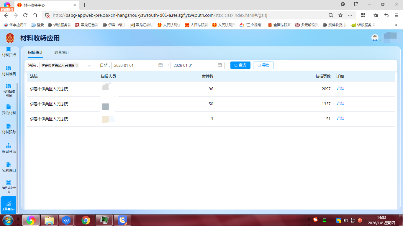 伊美区法院现已正式实现案件“立案即生成”电子卷宗的全流程闭环管理。设立专门的立案登记人员与扫描编目人员,对案件材料进行规范化扫描、精准化编目,确保电子卷宗与案件办理同步启动、同步流转。法官可随时在线调阅电子卷宗,大幅节省案卷翻阅时间;当事人及律师阅卷也更加便捷高效,真正实现从“纸堆里找档案”到“指尖上查档案”的转变。目前已经实现电子卷宗随案同步生成140余件,扫描3300余页。